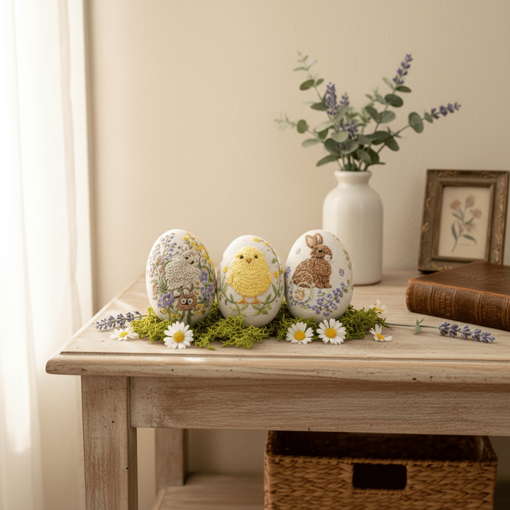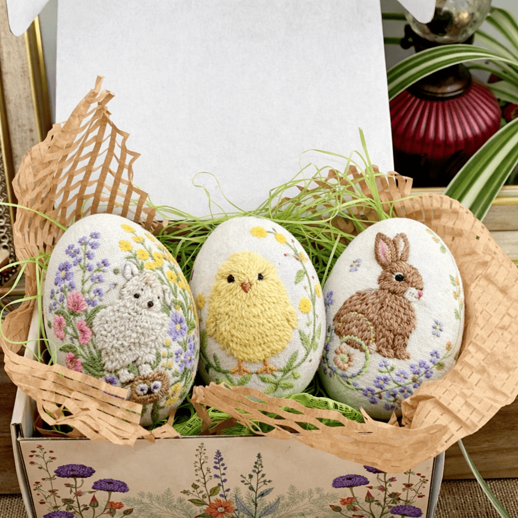 Rubbyoo Easter Egg Embroidery Kit - Flowers And Rabbits | Easter Bunny Hanging | Mother's Day Gift
