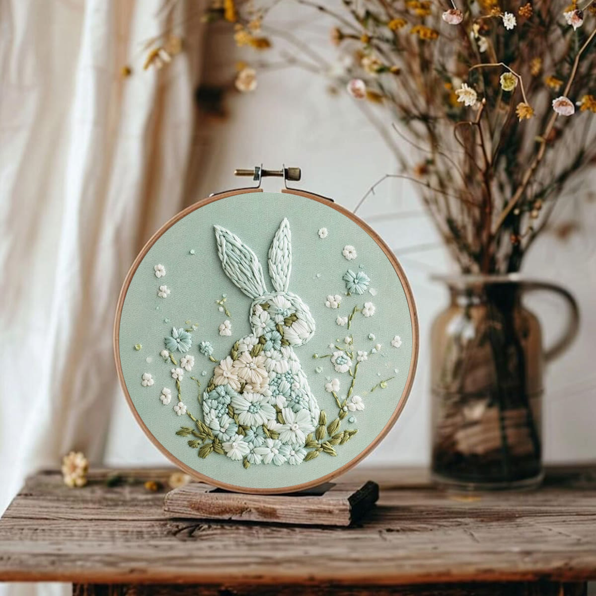 Rubbyoo Embroidery Kit - Bunny With Floral | Hand Stitch Gift