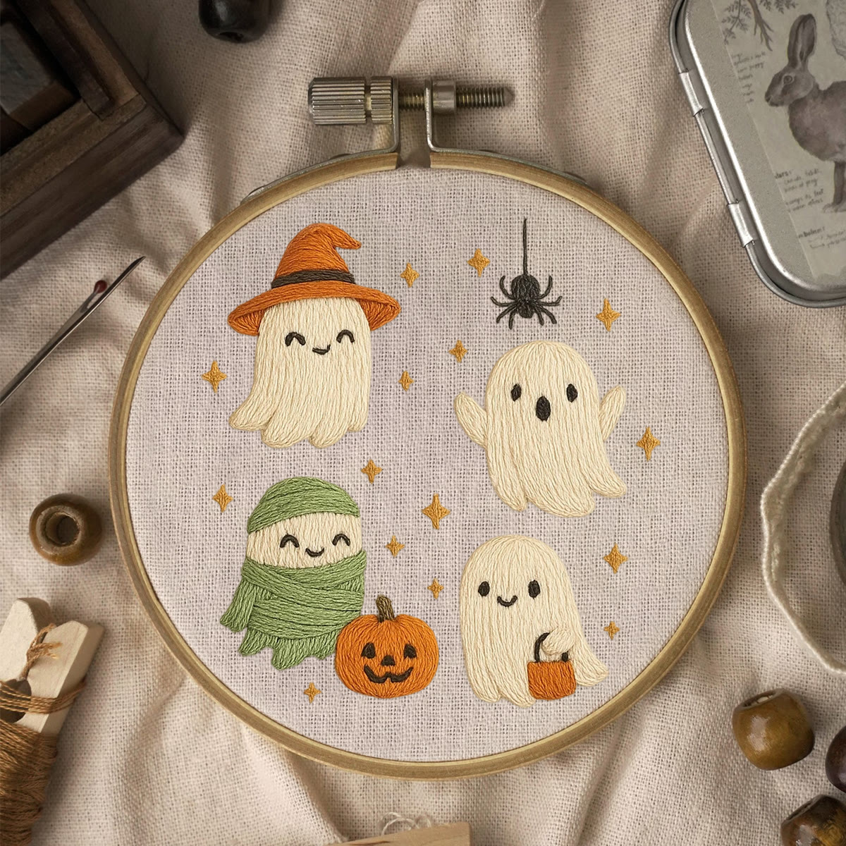 Rubbyoo Embroidery Kit - Happy Ghost | Handmade Halloween Craft