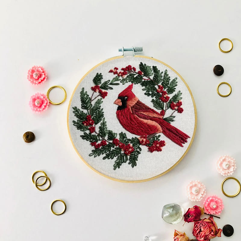 Rubbyoo Embroidery Kit - Red Cardinal On A Tree | Holiday Needle Craft Gifts