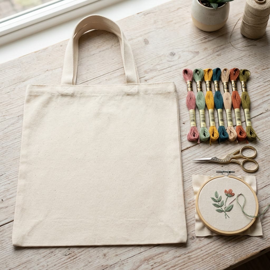 Rubbyoo Embroidery Tote Bag Kit - Little Daisies | Diy Craft Gift | Handmade Shoulder Bag