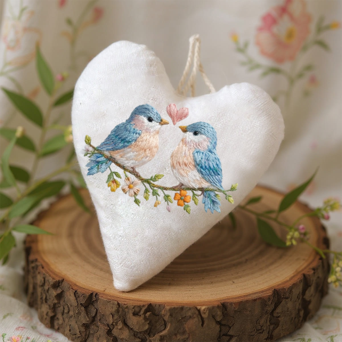 Rubbyoo Heart Embroidery Kit - Twin Birds Heart | Cute Hanging Ornament | Beginner-friendly Diy