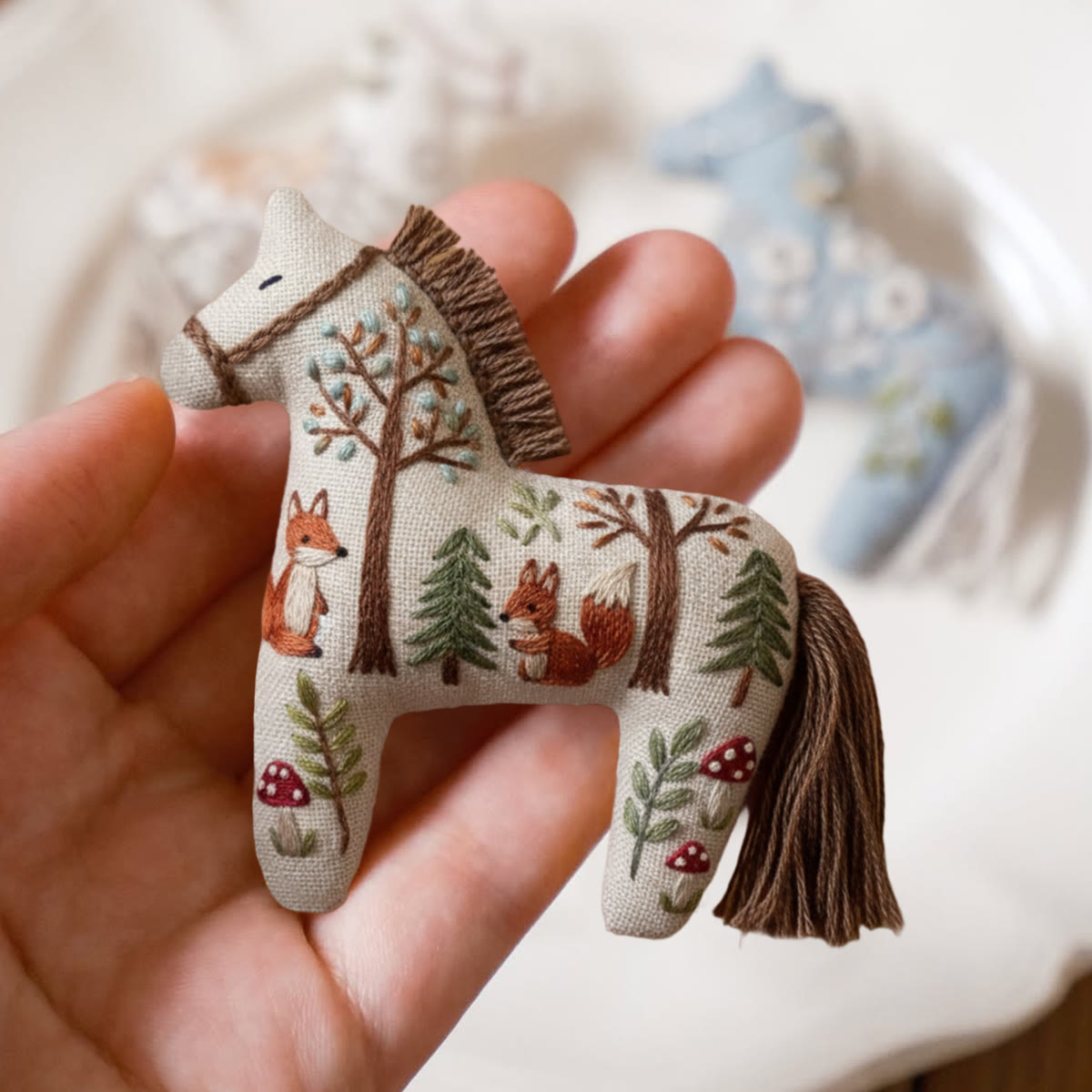 Rubbyoo Dala Horse Embroidery Kit - Fox In Forest | Animal Needle Artwork | Adorable Handmade Craft