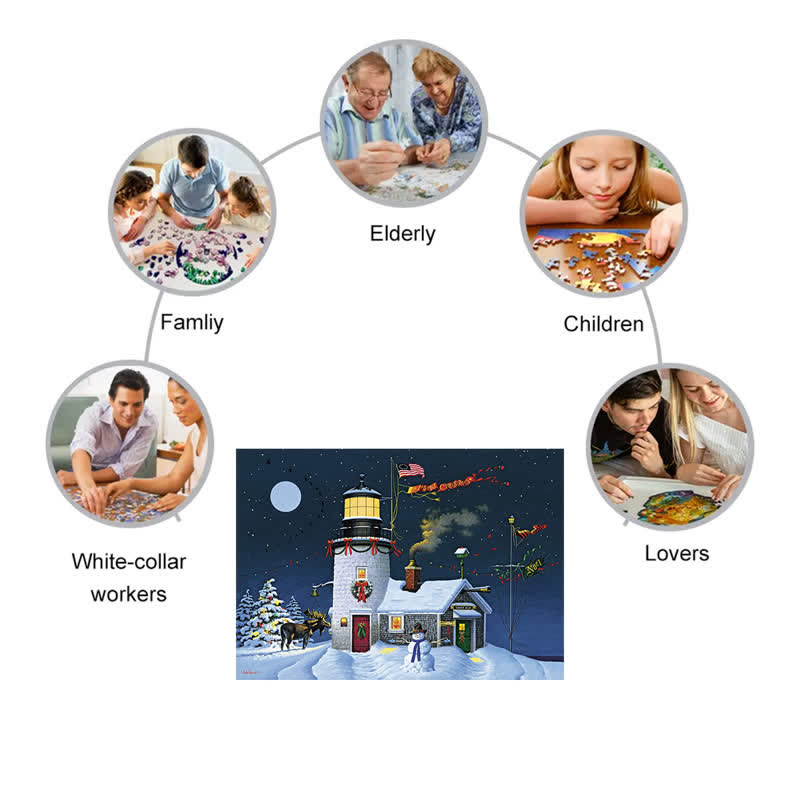Rubbyoo Light & Bright Christmas House Flag - Wooden Jigsaw Puzzle
