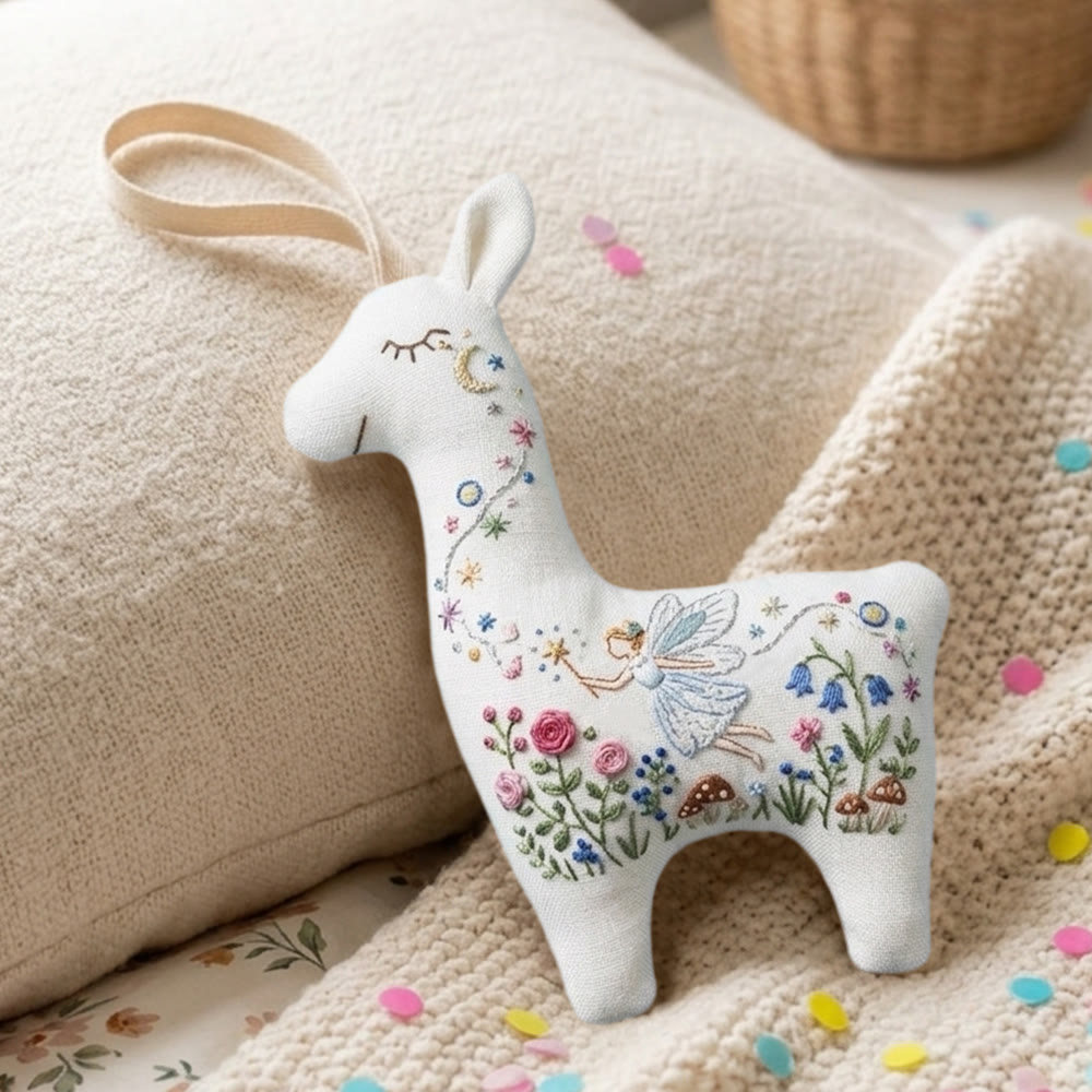 Rubbyoo Llama Embroidery Kit - Whimsical Fairy Design | Magical Forest Nursery Gift | Floral Mushroom Hanging Accessory