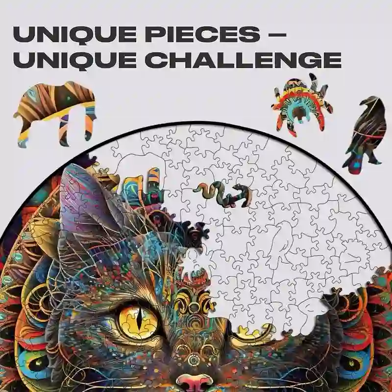 Rubbyoo Mandala Cat - Wooden Jigsaw Puzzle