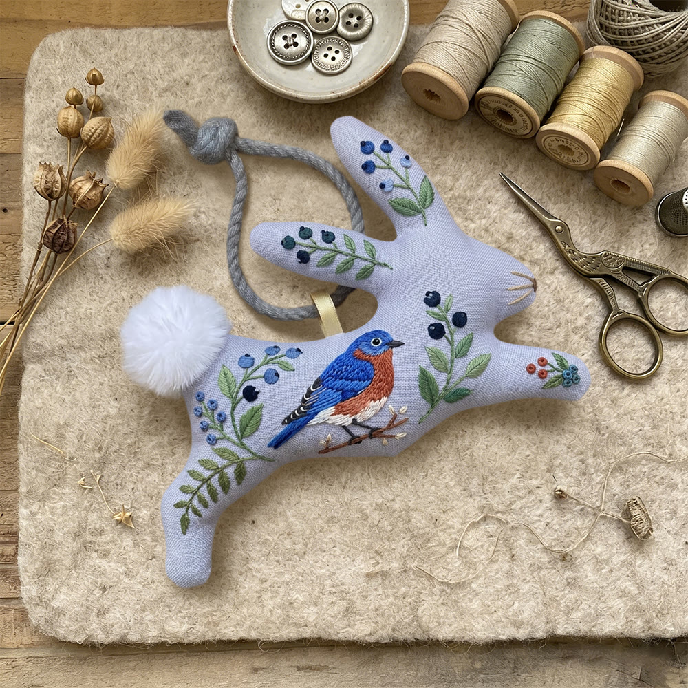 Rubbyoo Rabbit Embroidery Kit - Blue Bird | Sewing Holiday Ornament | Handmade Stitch Craft