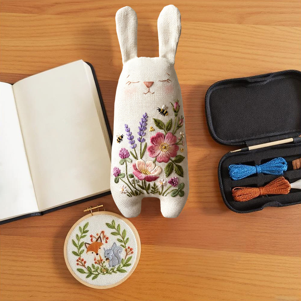Rubbyoo Bunny Toy Embroidery Kit - Lavender And Peony | Accessible Diy | Lovely Gift For Nature Lovers