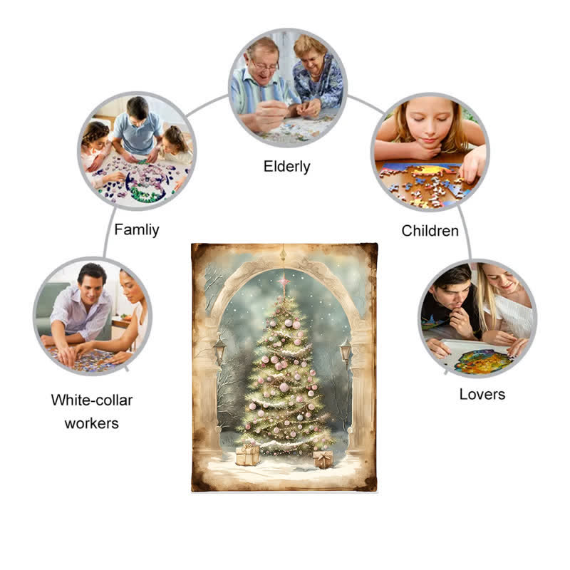 Rubbyoo Shabby Chic Pink Rose Christmas Tree - Wooden Jigsaw Puzzle