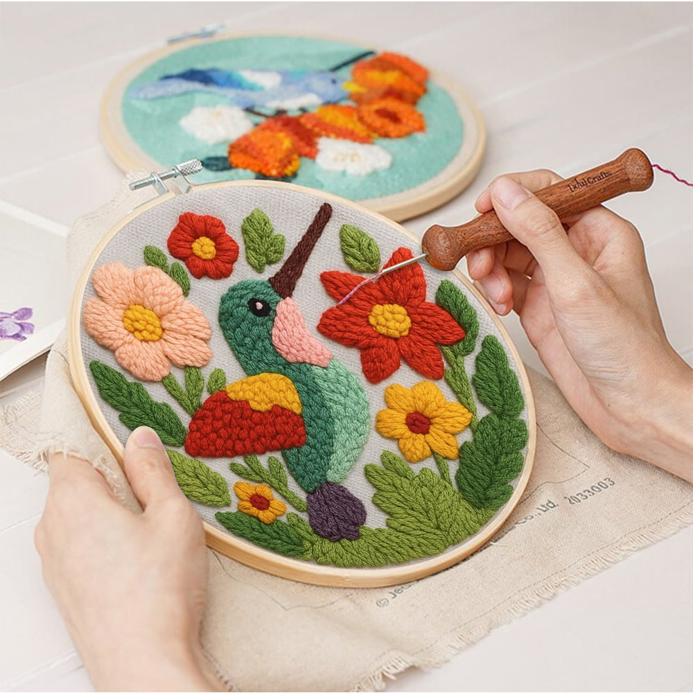 Spring Hummingbird Punch Needle Kit - Flowers Blossom Craft | Nice Gifts For Animal Lovers