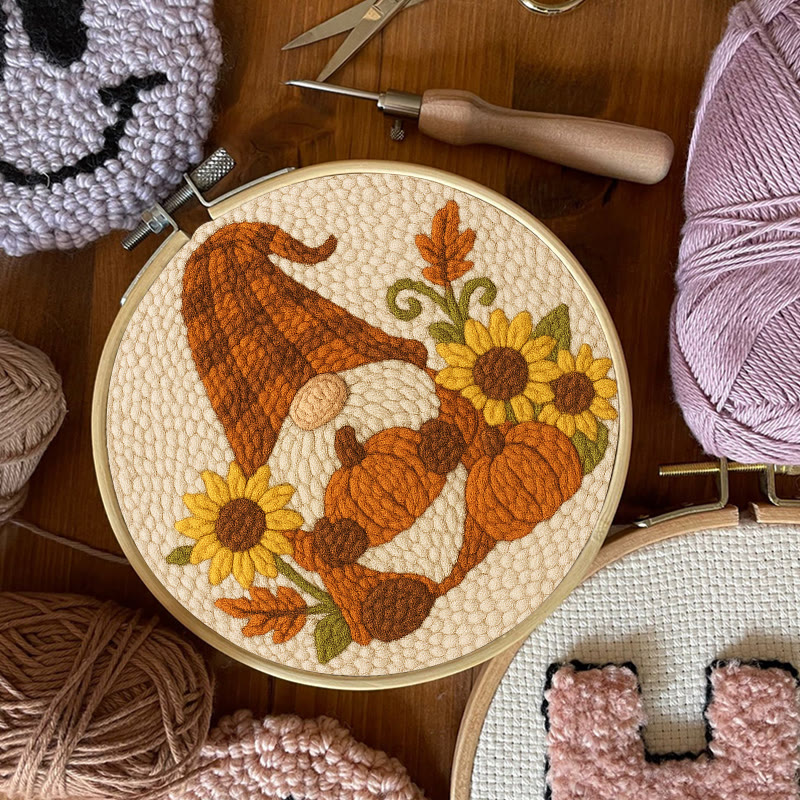 Sunflower Gnome Punch Needle Kit - Halloween Pumpkin Craft | Holiday Handmade Decor