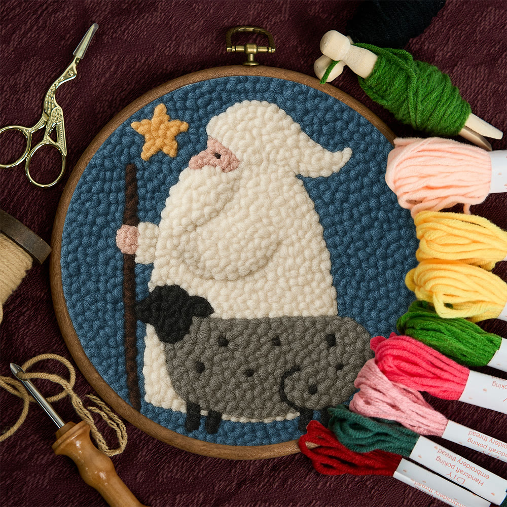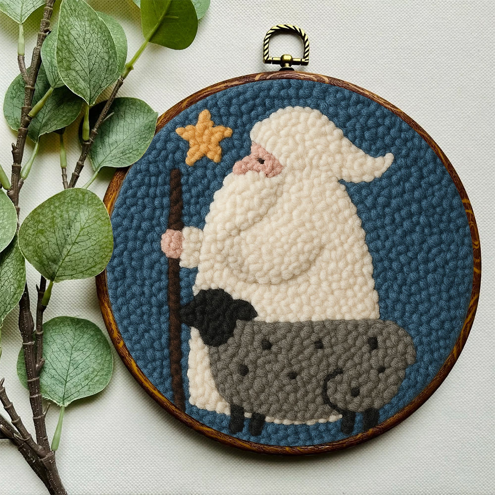 Warm Shepherd With Star Punch Needle Kit – Cozy Diy Craft Project | Festive Holiday-inspired Wall Art